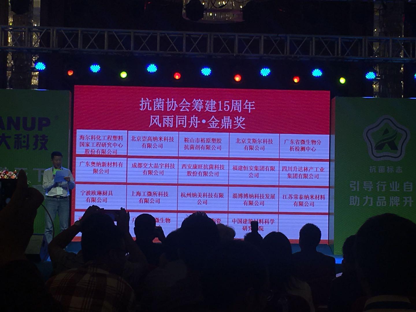 我司还获得抗菌协会筹建15周年 风雨同舟 金鼎奖
